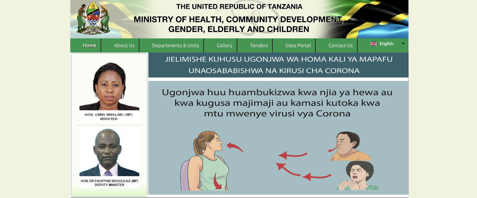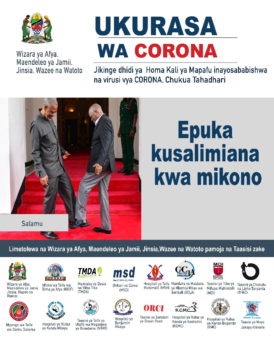 Mnamo tarehe 16 mwezi Machi mwaka 2020, jijini Dar es Salaam, serikali ya Tanzania kupitia Waziri wa Afya, Ummy Mwalimu, ilitangaza kesi ya kwanza ya mgonjwa mwenye virusi vya corona, aliyepatikana mjini Arusha, siku moja kabla. Kwa kuzingatia Kanuni ya 46 ya Sheria ya Afya, Waziri alitoa maelekezo kwa umma kuhusu namna ya kujikinga na maambukizi ya kirusi huyo. Hii ikijumuisha, kupunguza safari zisizo za lazima, kuweka vyombo vya kunawia mikono katika taaasisi kubwa, vyombo vya usafiri, na maeneo yenye mikusanyiko; kuepuka kushikana mikono, kukumbatiana, kubusiana; kuepuka kushika pua, mdomo na macho; na kuweka zuio la ndugu kutembelea wagonjwa hospitalini.