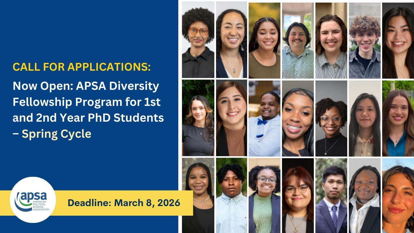 CFA: APSA Diversity Fellowship Program – 1st and 2nd Year PhD Students