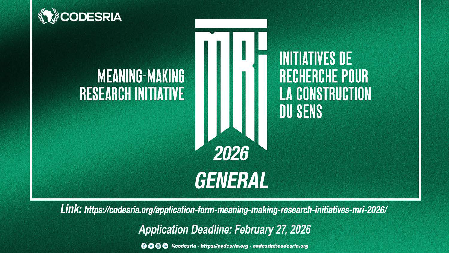 CFA: CODESRIA Meaning-Making Research Initiatives (MRI) 2026