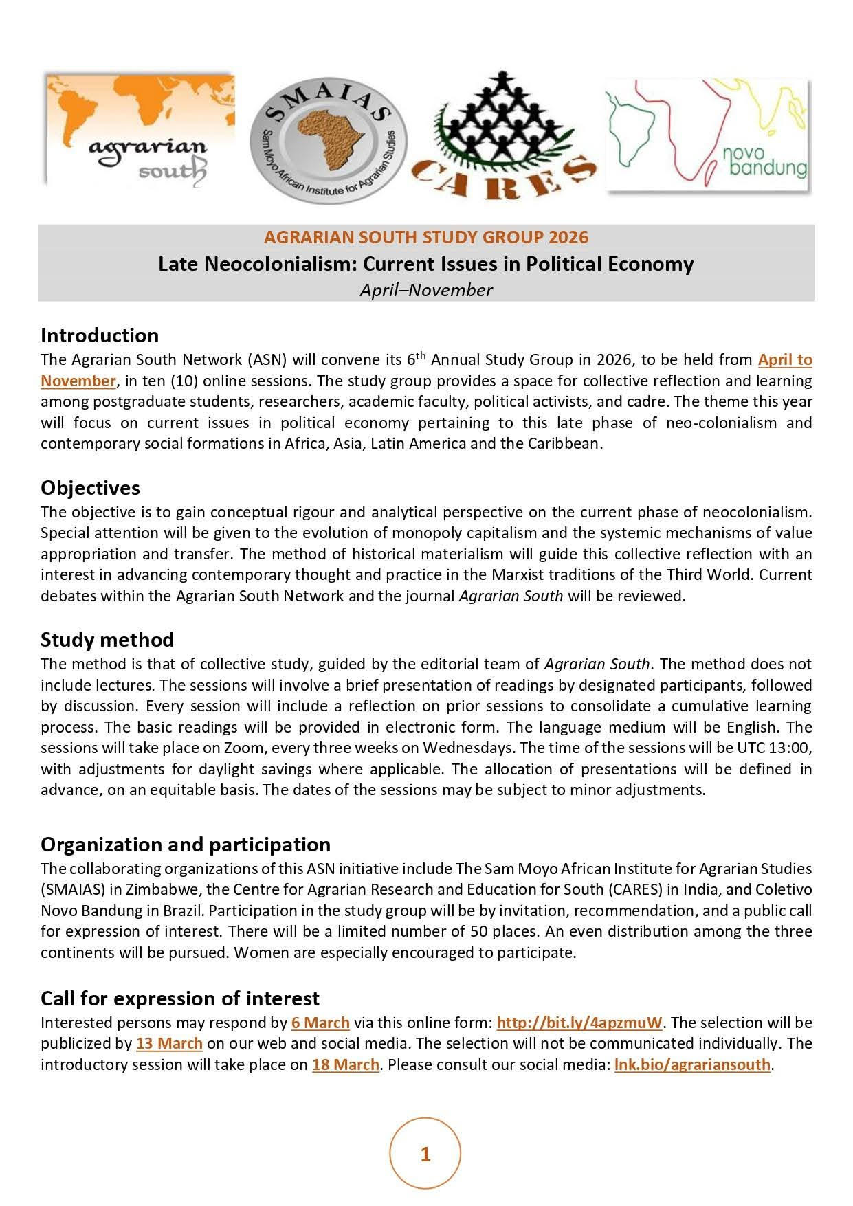CFEOI: ASN Study Group 2026 – Late Neocolonialism: Current Issues in Political Economy