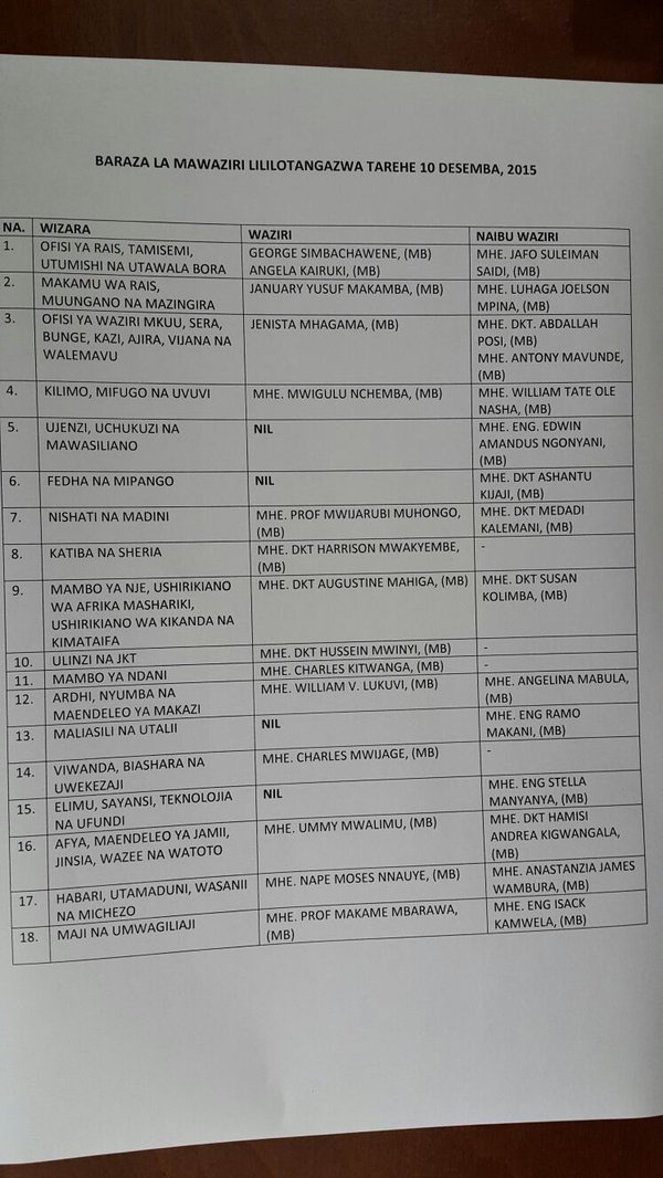 Pia inafanya watu wajiulize iweje kiongozi mwenye uzoefu wa hali ya juu katika kuendesha Wizara ya Ujenzi atumie muda mwingi kumtafuta ‘mrithi’ wake. Hali kadhalika inafanya watu wahoji ni kwa nini Waziri wa Elimu asubiriwe hivyo ilhali hii ni Desemba 2015 na kuna kazi ya ziada ya kutimiza ahadi ya elimu bure kwa shule za Msingi na Sekondari ifikapo Januari 2016.